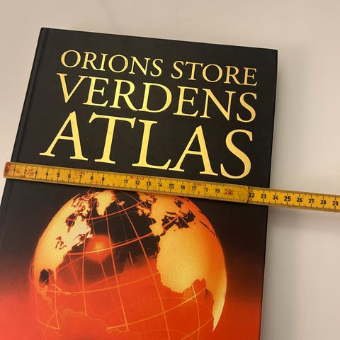 Orion Verdensatlas bok med detaljerte kart over hele verden, inkludert Norge og andre nordiske land. Atlaset inneholder fargekart over alle land, regioner og byer, samt informasjon om solsystemet, universets røtter og romforskning. Egnet for hjem og skolebruk.