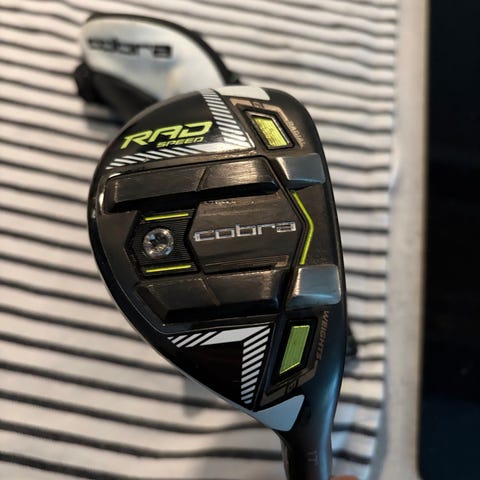 Selger en Cobra RadSpeed 5-wood i pen brukt stand. Dette er en svært allsidig fairwaywood som gir god kombinasjon av lengde, launch og kontroll – perfekt både fra tee og fairway.