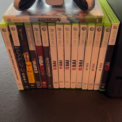 Xbox 360 med 2 kontroller og spill
