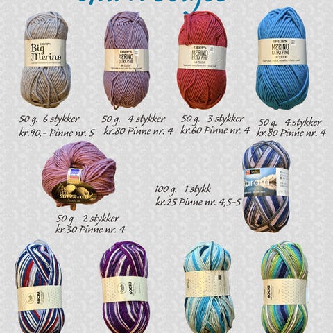 Både helt uåpnet og noe åpnet, se bilder. Jeg har heklet og heklet men får ikke brukt alt og noe er jeg lei av å lage flere ting i:)