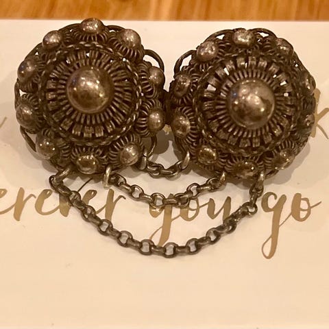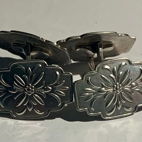 Pent bevarte mansjettknapper i sølv med mestermerkestempel. Tror det er til bunad, men usikker på kjønn. Antar de er noen år gamle.