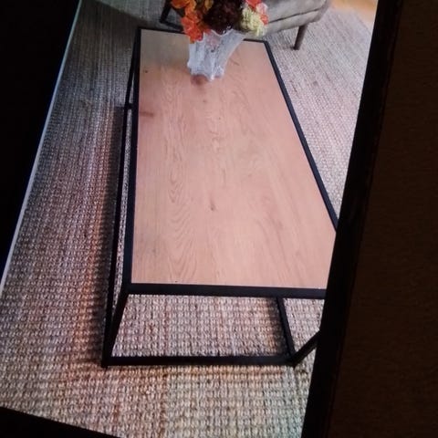 Bordet er massiv furu heltre. Bordplata er malt i en lys gråfarge som lett kan pusses bort hvis man vil.