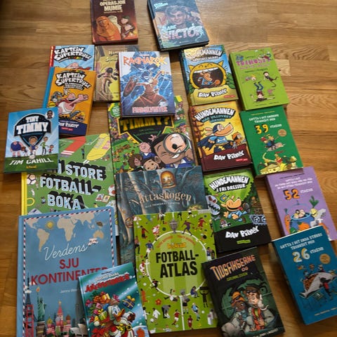 Har flere bøker som ikke er lagt ut. F eks Håndbok for superhelter, Line-bøker fra Anneli Klepp, Dustedagboka mm. Ta kontakt hvis du ønsker bilder av disse i tillegg.