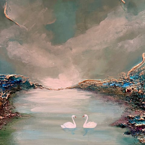 Malingen er bygget opp med kraftig tekstur, noe som gir bildet dybde og fysisk tilstedeværelse. Lyset spiller ulikt i overflaten og gjør at uttrykket endrer seg etter rom og betrakter.