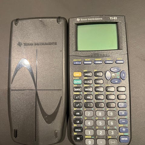 Texas Instruments TI-83 Plus kalkulator med funksjoner for vitenskapelige og matematiske beregninger. Enheten har et LCD-display og flere funksjonstaster for avanserte funksjoner. Passer til bruk i skole og studier.
