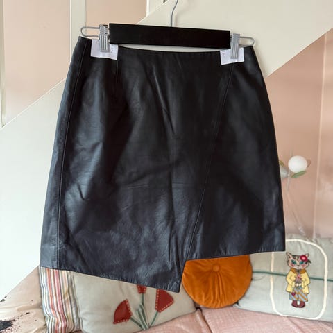 Praktisk talt ubrukt skinnskjørt fra Selected selges rimelig. Skjørtet er i svært god kvalitet, i mykt skinn. Strørrelse 40
