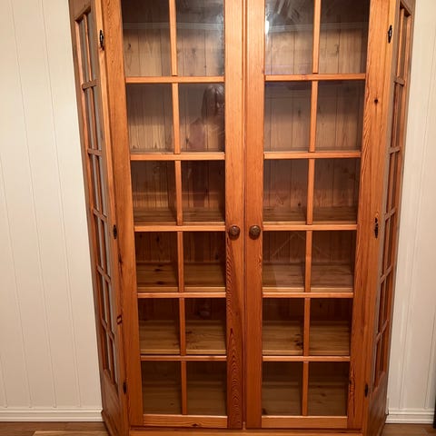 Stort vitrineskap med lys selges