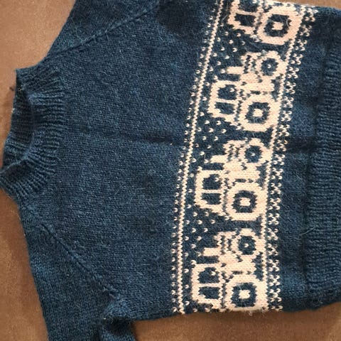 Fin og varm ullgenser med flott traktormønster. Håndlaget.