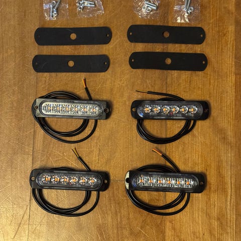 4 Ekstra lys 24v stått på lastebil. Kjenner ikke noe mer til om de. Ser greie ut. Mangler holder. Kan sende i posten 140kr.