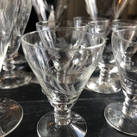 Forskjellige vintage glass som vil pynte opp ethvert festbord.