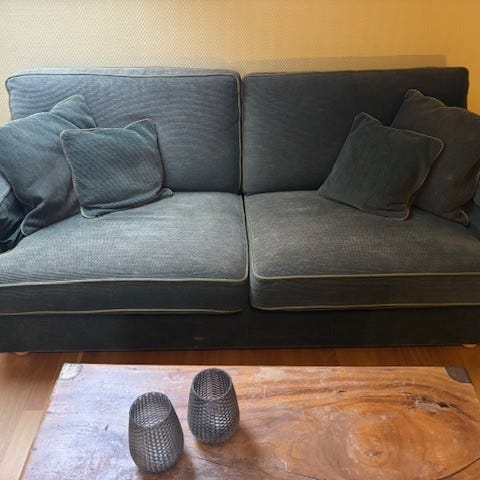 Pent brukt liten sofa til salgs. Passer fint for 1-2 personer. Perfekt for liten stue, hybel, studentbolig eller gjesterom. Sofaen har god sittekomfort med fast sete og behagelig ryggstøtte.