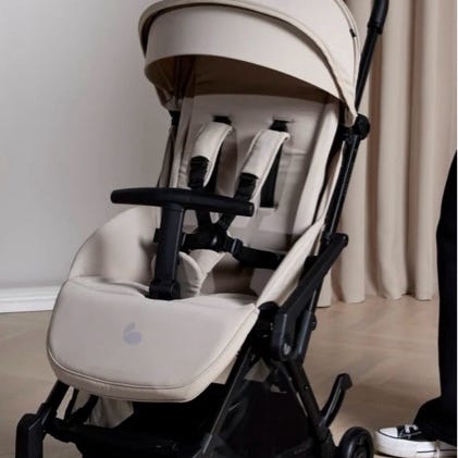 Vognen kan foldes sammen til håndbagasjestørrelse på fly (sjekk flyselskapenes regler), og kommer med original bærepose. Den er lett å manøvrere med én hånd og har god fjæring på hjulene. Følger også med regntrekk. Liten skade på det ene fronthjule. var sånn når vi kjøpte den, har ingenting å si for bruken.
