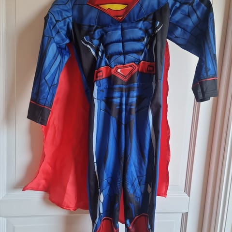 Stilig supermann drakt str 7-8 år. Lite brukt av et barn da den fort ble for liten. Ingen flekker eller hull, fremstår egentlig som ny.