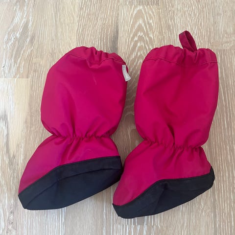 Meget pent brukte fotposer fra Reima. Størrelse 1, ca 6-18 mnd. Holder mini god og varm på bena. Antiskli på sålen.