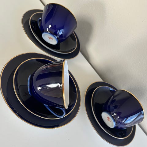 Rosenthal classic rose kaffeservice med 8 kopper og skåler, 7 assietter og en kaffekanne, melkemugge og sukkerkopp. Veldig lite brukt (en kaffekopp har et lite skår i kanten.