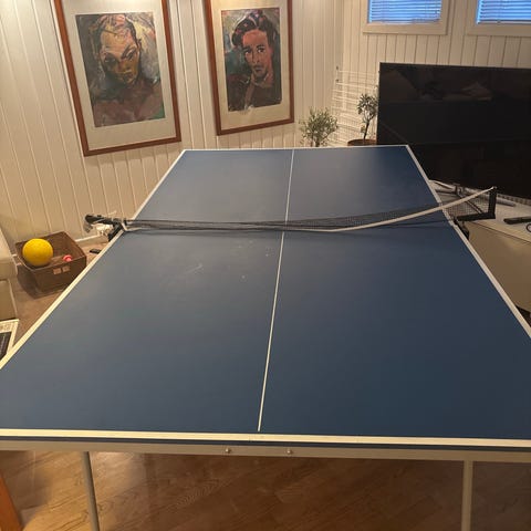 Sammenleggbart mini-bortennisbord. Kjøpt på Biltema.
