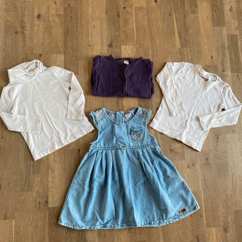 Klespakke med 5 gensere, 1 enhjørning fleecedress, 1 tights og en fin tyllkjole fra Nameit.