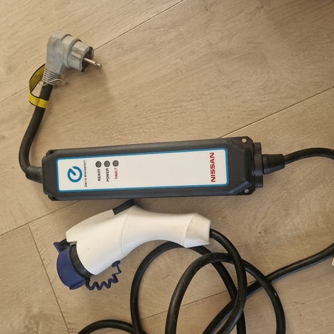 Selger en original ladekabel til Nissan Leaf for lading via vanlig stikkontakt (Schuko).