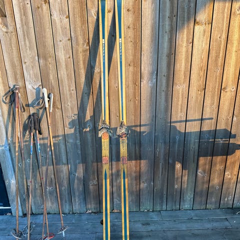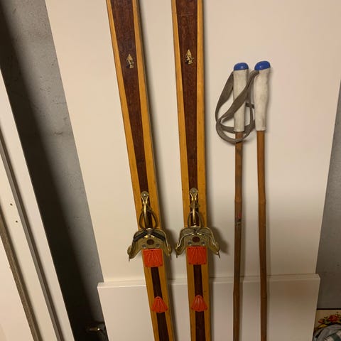 Ca. 60 år gamle treski for nostalgikere eller til pynt på hytteveggen.