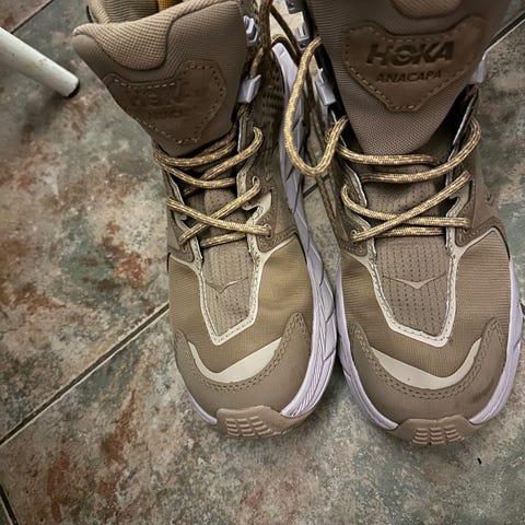 Selger et pent brukt sorte Hoka Anacapa GTX. I str 38. Selges pga de ble for smale for meg da jeg må ha wide modellen i stedet.