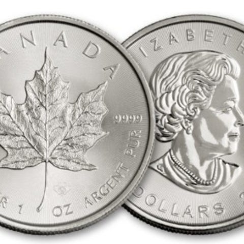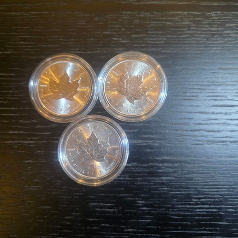 Selger 1 tube (25stk) kanadiske maple leaf mynter.