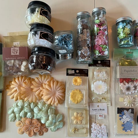 Masse ektra fine blomster og 2 sommerfugler for scrapbooking/kortlaging.
