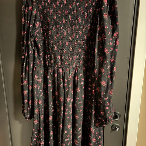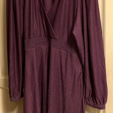 Nydelig, svart glitterkjole fra Careless 🤩 Brukt kun tre ganger, like fin 🥰 Med lommer! 👌🏻 Jeg er 167 og kjolen går rett nedenfor knærne. Ny pris var 1299,- Finnes ikke hos Careless lenger 😱 Selges pga at den ikke passer lenger ☹️