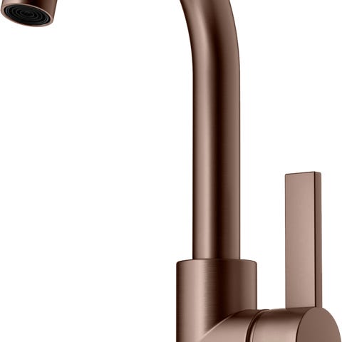 Armaturet har en høy, buet tut og en enkelt hendel for justering av vannstrøm og temperatur. Designet for montering på baderomsservanter med standard mål.