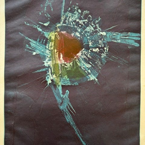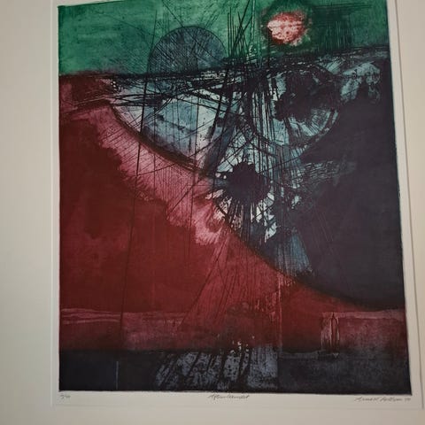 Etsning "Uten grenser" nr. 10/35 1982 signert av Arnold Rottem med ramme. Rammen har noen skrammer.