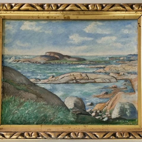 Bildet har størrelse: H:49 B:58 og med ramme: H:77,5 B:70 cm.