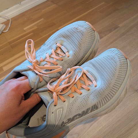 Hoka Bondi 6, grå/ blå str 37 1/3. pent brukt, i god stand, ingen hull eller skader