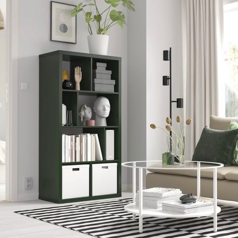 Hyllen er svært allsidig og kan brukes både til utstilling og oppbevaring. Den passer perfekt sammen med IKEA sine bokser og innsatser dersom man ønsker lukket oppbevaring i enkelte av rommene.