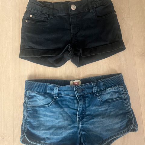 2 stk olashorts og en i samme denim stoff i grått. Den grå er designet med ett hull som avbildet, så det er ingen skade.