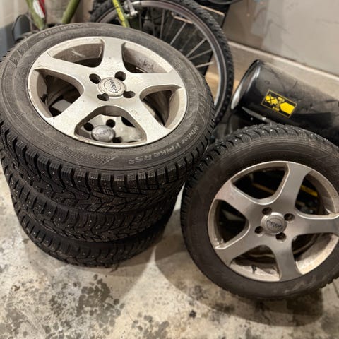 Et komplett hjulsett med dekk 205/60-16 VikingContact 7.