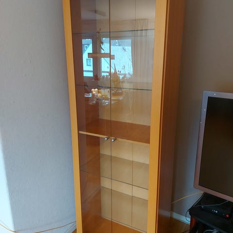 3 glassdører som skal være øverst og 3 heldekkende dører nederst på skapet følger med.