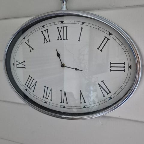 Selger denne fine klokken til å henge på veggen. 45,5cm bred
