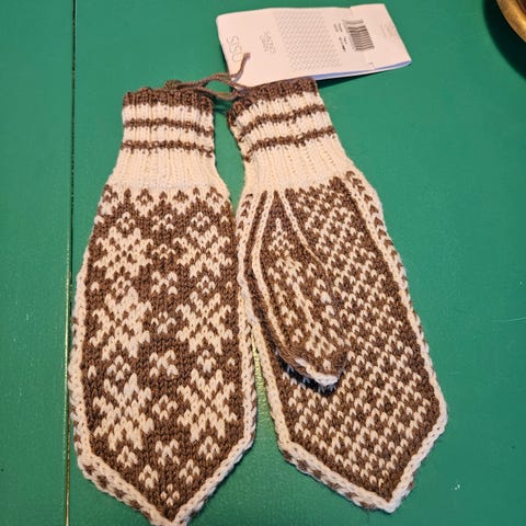 Det er strikket i et fint ullgarn, og kan vaskes på 30-40 grader i maskin.