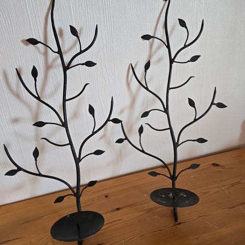 To pent brukte svarte lysestaker i metall