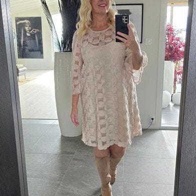 Beige kjole fra Synnøve sorthe sin kolleksjon