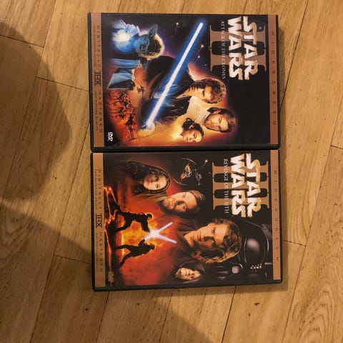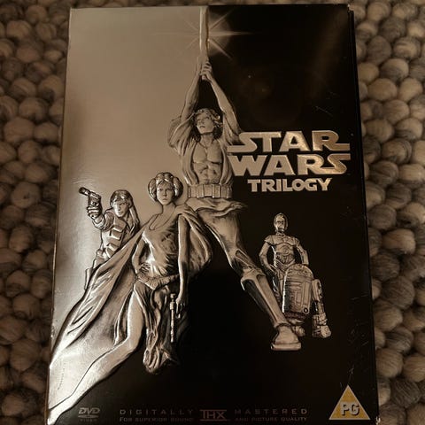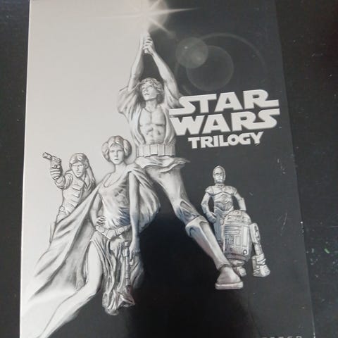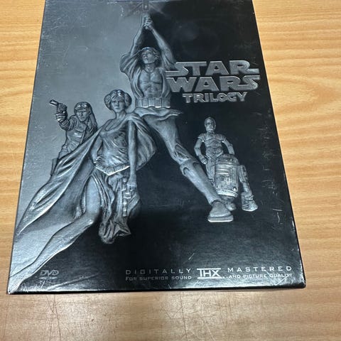 Star Wars DVD-sett bestående av tre filmer: Return of the Jedi, A New Hope, og The Empire Strikes Back. Hver DVD inneholder en av de klassiske filmene fra Star Wars-serien.