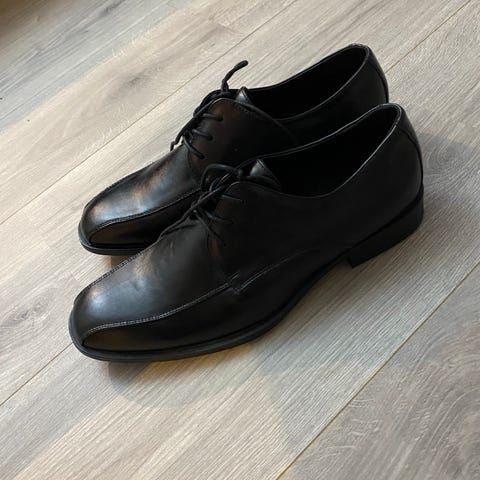 Skoene er brukt, men i god stand. Se bilder av sålene – her er det masse mønster igjen og mange mil igjen i skoene. Ingen skader på sømmer eller lær, men de har naturlige bruksmerker.