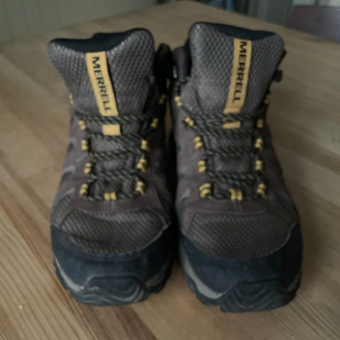 Selger et par kraftige og solide fjellstøvler av typen Merrell Ridge Gore-Tex II.