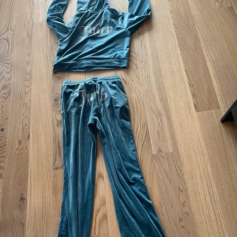 Juicy Couture treningsdress i størrelse XS, laget av polyester. Dressen består av en hettegenser str S med glidelås og matchende bukser str xS i midjestørrelse. Fargen er rød. Materialet gir komfort og egner seg til fritidsbruk eller trening.