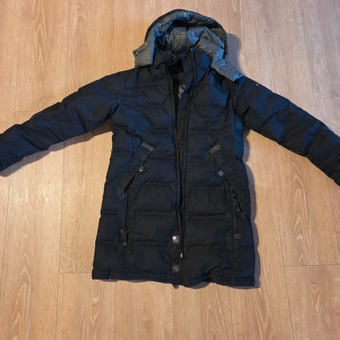 Helfòret og varm kåpe med trykknapper og 2 stikklommer.