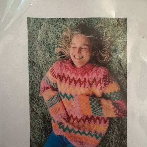 Alafosslopi ullgenser med flerfarget mønster rundt halsen. Genseren er strikket i naturfarget ull med detaljer i blått, rødt, gult og grønt. Tradisjonell islandsk design med rundfelling. Passer for både kvinner og menn.