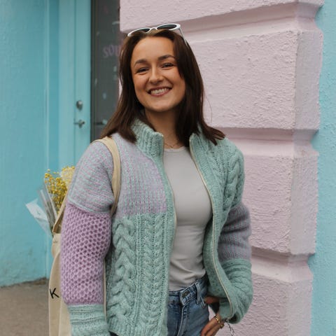 Mål: hel overvidde 104cm, hel lengde fra hals 59cm, lengde målt fra under arm 40cm og lengde arm målt fra under arm 44cm.