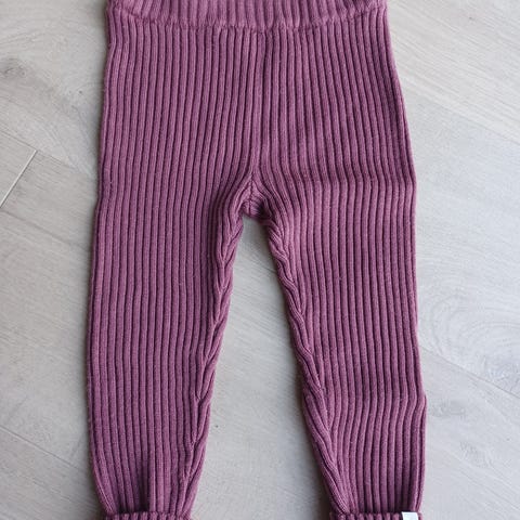 Strikk + knyting i livet. Ribbestrikk på enden av buksebena. God og varm! Pent brukt.