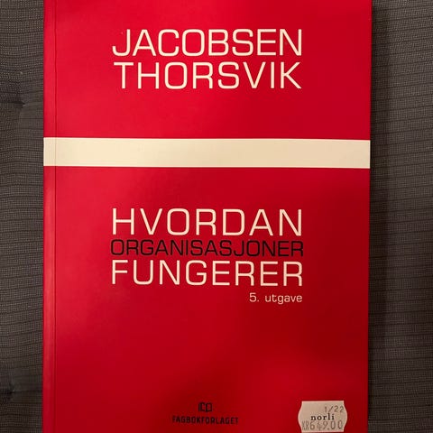 Jacobsen Thorsvik Hvordan organisasjoner fungerer er en lærebok innen økonomi og administrasjon. Boken dekker temaer relatert til organisasjonsstruktur og funksjon, og er utgitt i sin 6. utgave. Den er egnet for studier innen økonomi og administrasjon.