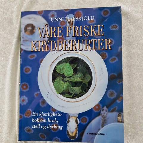 Våre friske krydderurter bok. Inneholder informasjon om bruk, stell og dyrking av ulike krydderurter. Boken inkluderer illustrasjoner og beskrivelser av urter som koriander og gressløk.