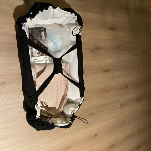 Selger lite brukt najell sleepcarrier, grå. Nyvasket med parfymefritt vaskemiddel, ingen dyr og ikke røyk. Lang lapp i kanten er avklippet for at den ikke skal være i vegen.